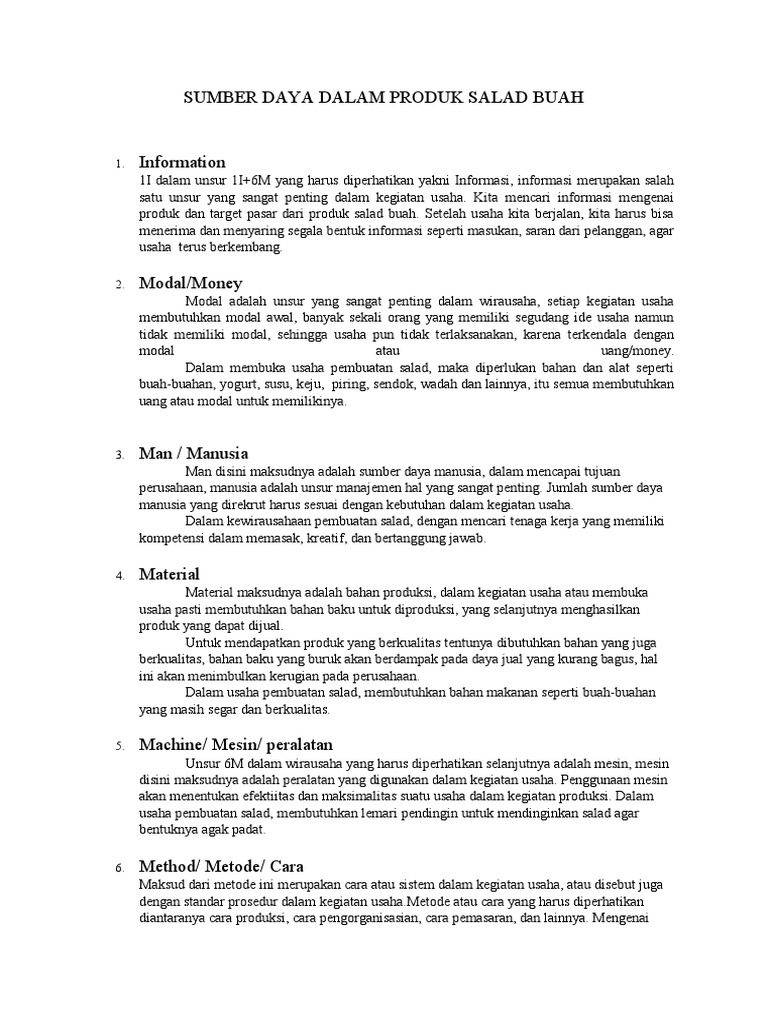 Sumber Daya Dalam Produk Salad Buah Pdf
